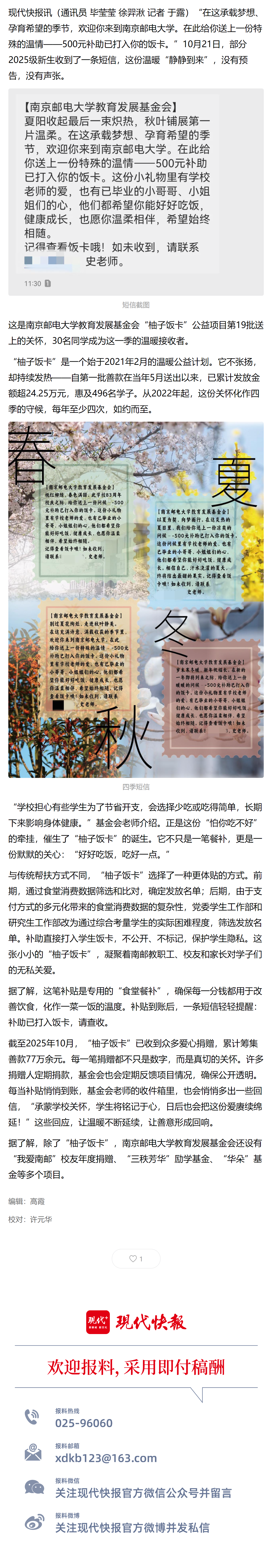 【现代快报全媒体】“500元补助已打入你的饭卡...