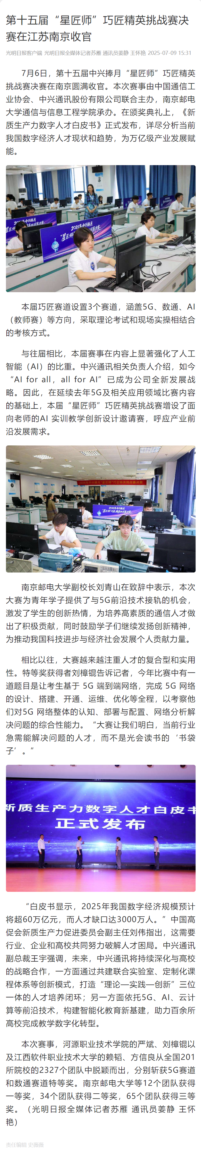 【光明日报客户端】第十五届“星匠师”巧匠精英挑战赛决赛在江苏南京收官