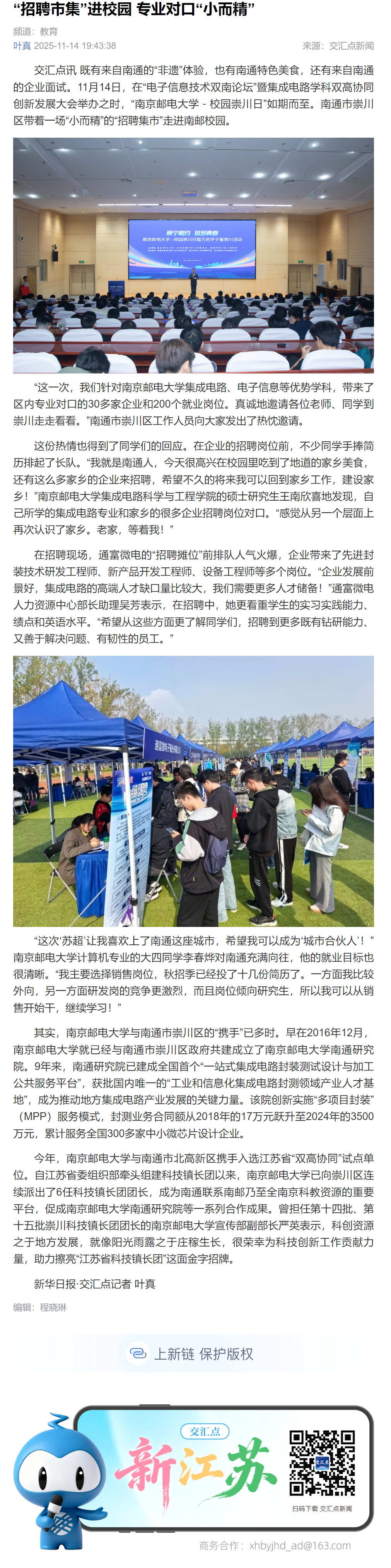 【新华日报客户端】“招聘市集”进校园 专业对口“小而精”