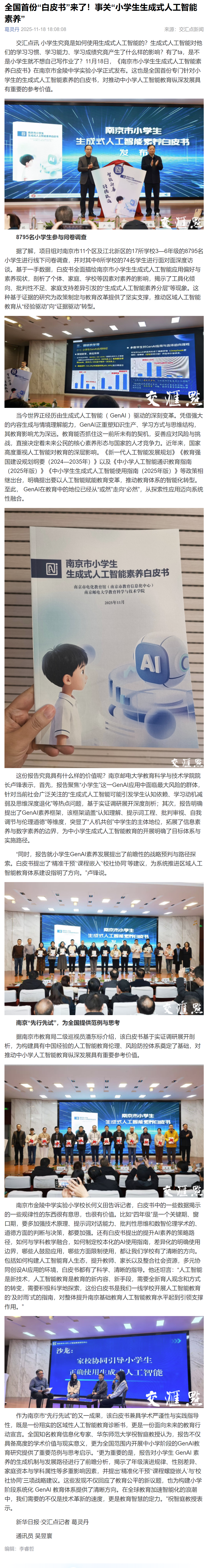 【新华日报客户端】全国首份“白皮书”来了!事关“小学生生成式人工智能素养”