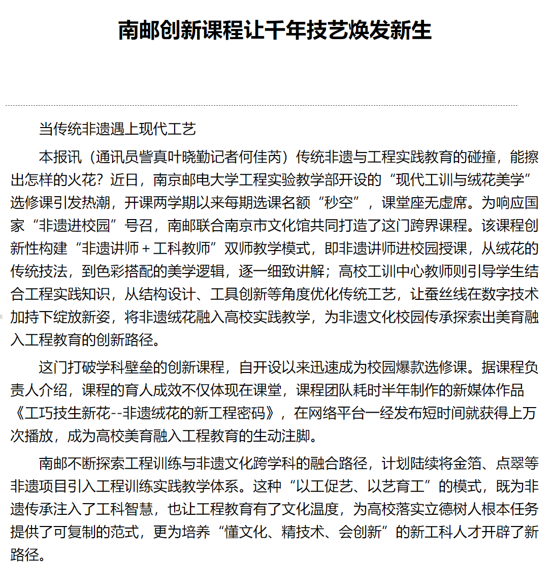 【江苏科技报】南邮创新课程让千年技艺焕发新生