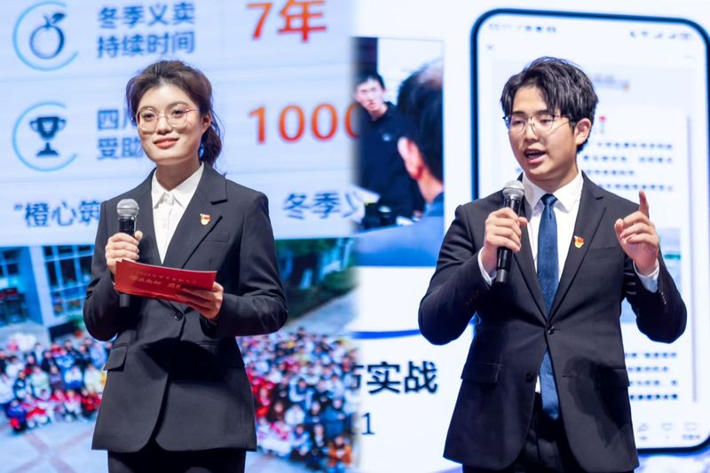 在“奋斗的青春”篇章中,周和林为在创新创业、社会实践、志愿服务方面涌现的先进集体和个人代表颁奖。优秀学生代表孙宁在科研创新中直面挑战,探索能源转化器件,攀登科创高峰,擦亮“无创新 不南邮”的闪亮名片。姚瑶在志愿服务中追求卓越,主动投身西部支教,扎根祖国大地,践行“邮青春 邮梦想”的青春誓言。