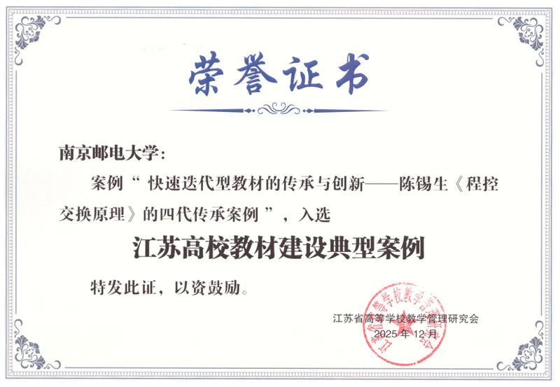 12月19日,南京邮电大学申报的《快速迭代型教材的传承与创新——陈锡生〈程控交换原理〉的四代传承典型案例》入选江苏省高校教材建设典型案例。