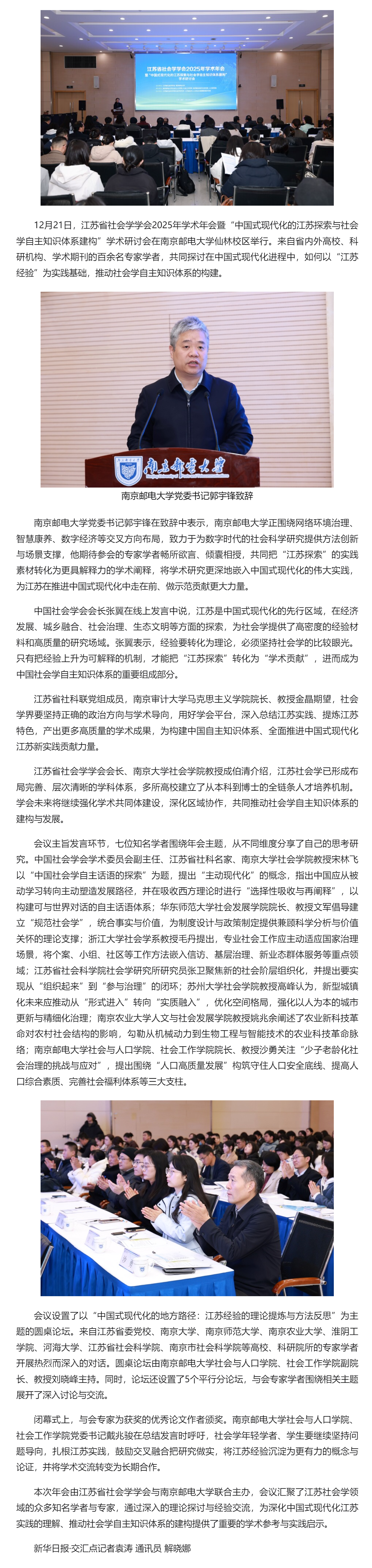 【中国江苏网】专家学者齐聚南京邮电大学 探讨社会学自主知识体系建构