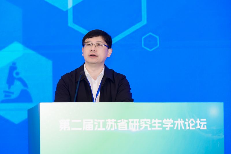 袁靖宇表示,此次论坛是中国研究生教育制度建立以来,江苏规模最大、学科覆盖最广的研究生论坛,也是全国规模最大的“3MT”学术演讲大会。他与同学们分享了读研心得,强调课堂外的经历对学生学术与职业生涯影响深远,期待同学们成为国家和社会的栋梁。