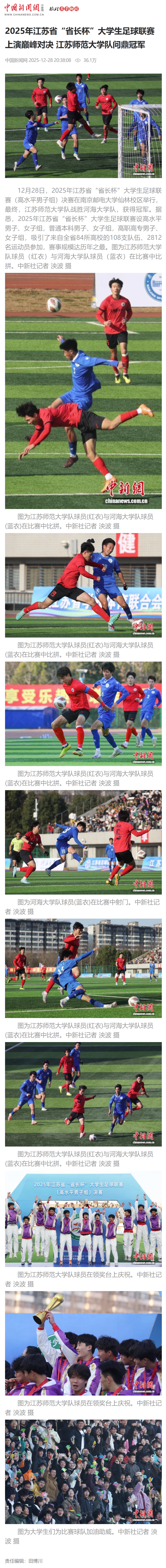 【中国新闻网】2025年江苏省“省长杯”大学生足球联赛上演巅峰对决 江苏师范大学队问鼎冠军