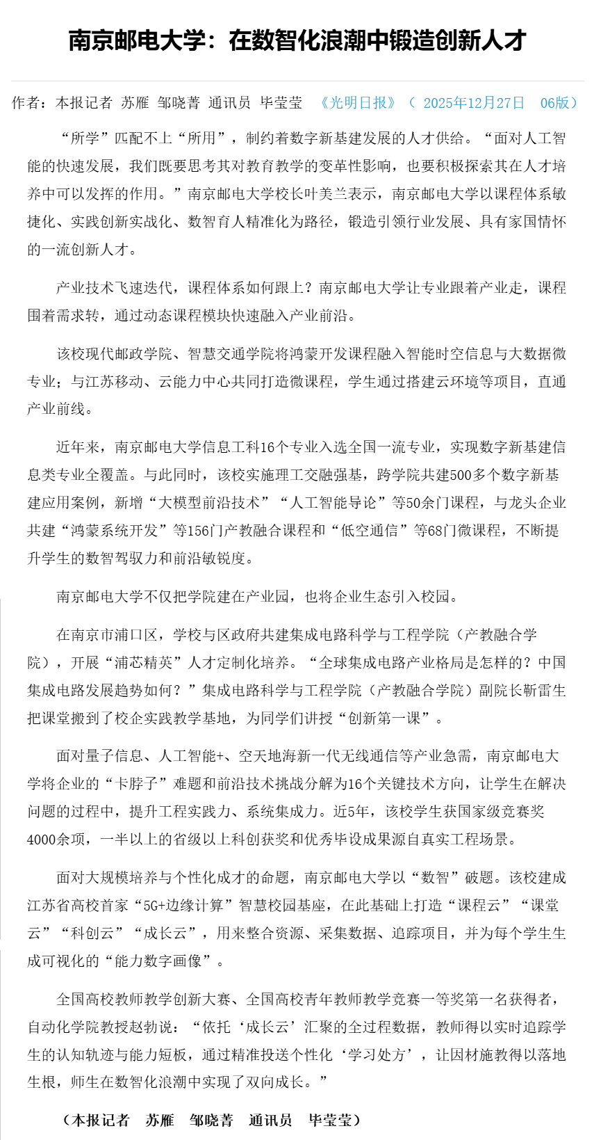 【光明日报】南京邮电大学:在数智化浪潮中锻造创新人才