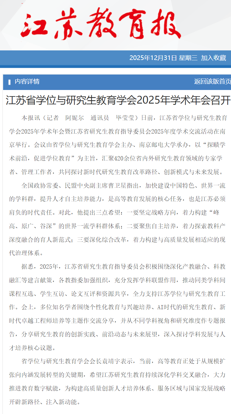 【江苏教育报】江苏省学位与研究生教育学会2025年学术年会召开