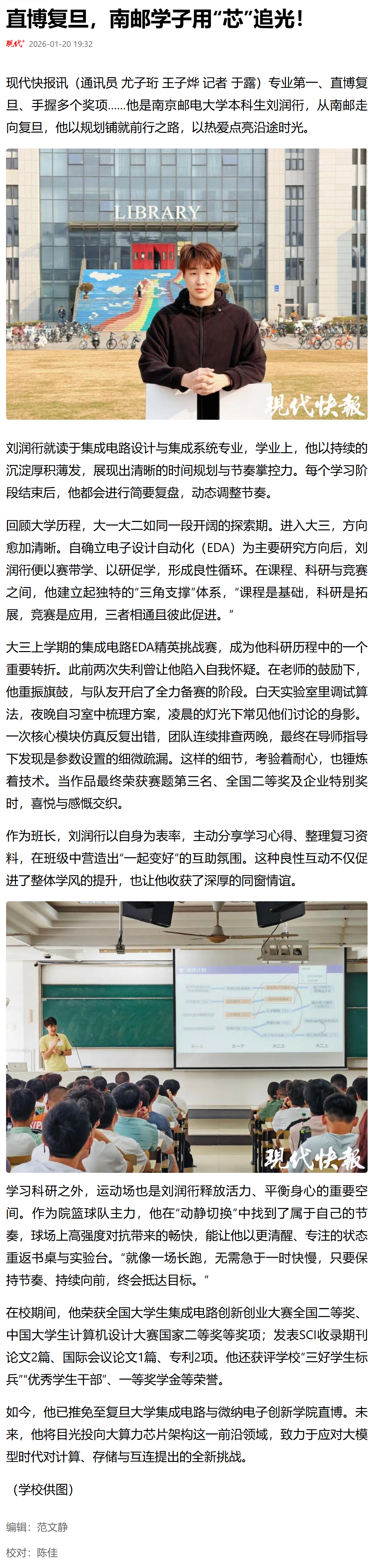 【现代快报客户端】直博复旦,南邮学子用“芯”追光!