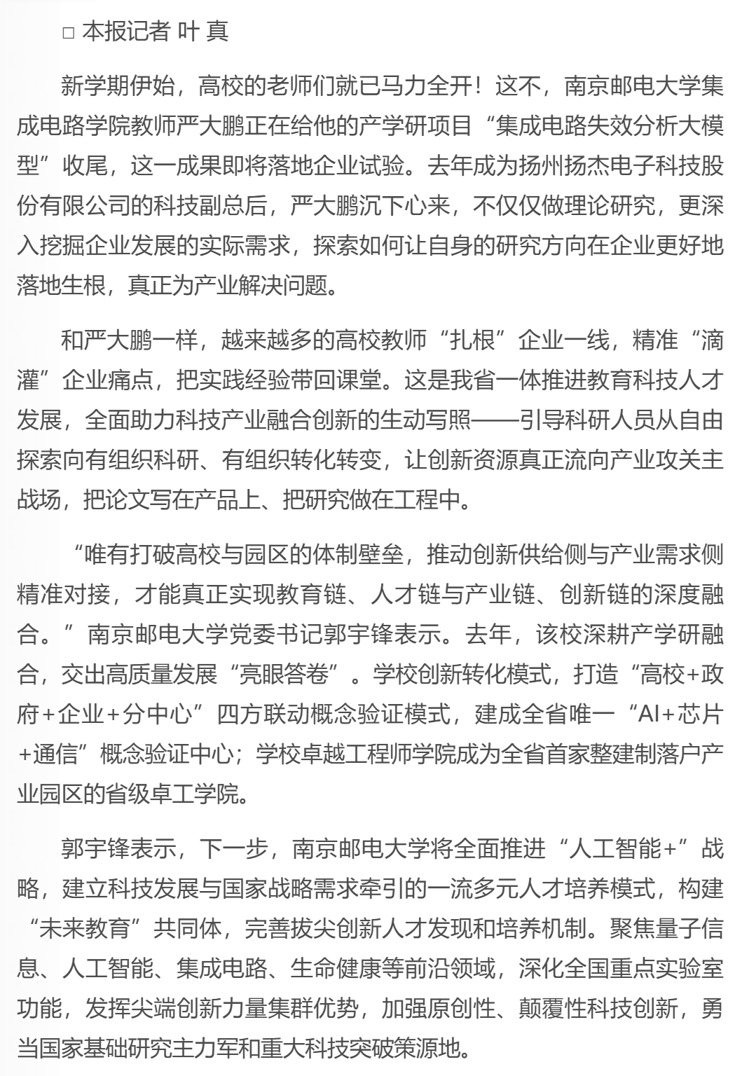 【新华日报】建成全省唯一“AI+芯片+通信”概念...