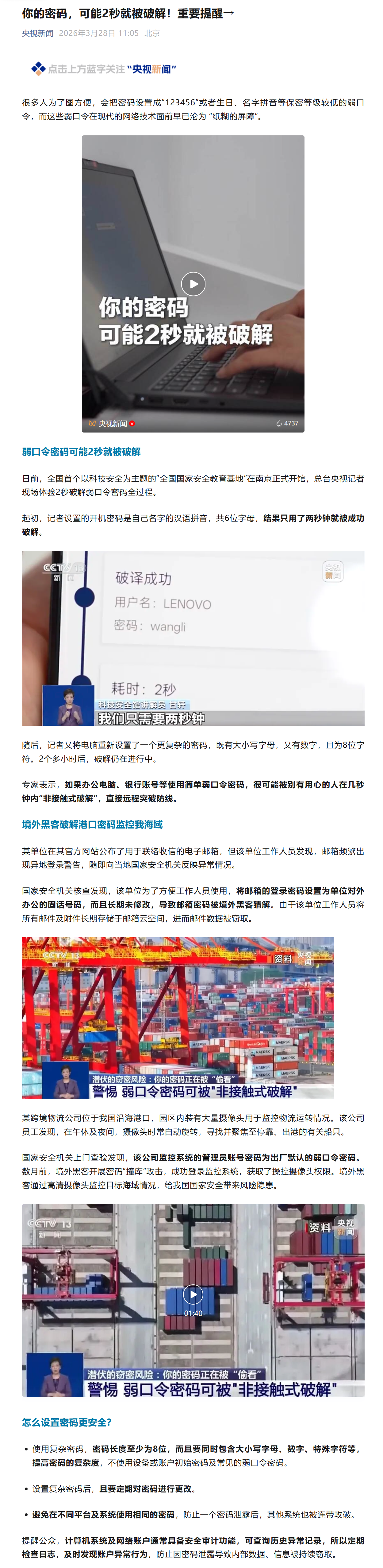 【CCTV-13】南邮黄海平教授解读“怎么设置密码...