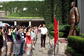2006年6月25日,通信与信息工程学院188名毕业班党员在梅园新村进行了宣誓仪式。 宣誓仪式由毕业班辅导员主持,作为在校期间最后一次党组织生活,面对鲜红的党旗,新党员庄严宣誓,老党员重温入 党誓词,全体毕业班党员纷纷表示,要以党员标准要求严格自己,站好最后一班岗。在今后的工作中,誓为母校争光,为学 院争光。 宣誓仪式后,同学们参观了梅园新村,认真聆听了讲解,了解到老一辈无产阶级革命家周恩来的生平业绩、思想理论和 人格风范,进行了一次生动的爱国主义、社会主义和革命传统教育。(通信与信息工程学院)