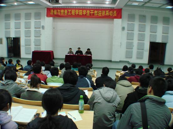 3月12日,通信与信息工程学院全体学生干部迎评再动员大会在仙林特大教室隆重召开。会议由党总支副书记彭洋老师主持。朱洪波院长和车军华书记作了重要讲话。各年级辅导员、院主要学生骨干500多人出席了会议。