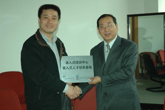 为了进一步提高学生的实践能力,深化校企合作,计算机学院和上海双实科技有限公司于2007年4月18日上午在校本部举行“嵌入式培训中心暨嵌入式人才培训基地”签约挂牌仪式。出席挂牌仪式的有计算机学院院长杨庚教授、上海双实科技有限公司董事长陈刚教授、高教研究所所长梅杓春教授、教务处副处长李飞教授、计算机学院副院长孙知信教授、章韵副教授以及相关的专家教授。章韵副院长主持了挂牌仪式。