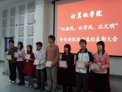 近日,计算机学院在仙林校区特大教室召开“比班风、比学风、比文明”争先创优总结表彰大会,出席此次大会的领导有学生处副处长徐雷、计算机学院院长杨庚、院党委副书记李其芳、毛建平。计算机学院所有辅导员老师及400余名学生党员、学生干部参加大会。