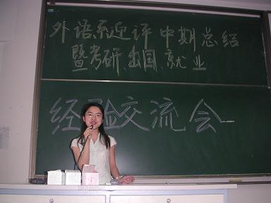 5月23日下午,在教2-311教室,外语系举行了“迎评中期总结暨考研、出国、就业经验交流会”。外语系全体非毕业班的学生参加了会议。