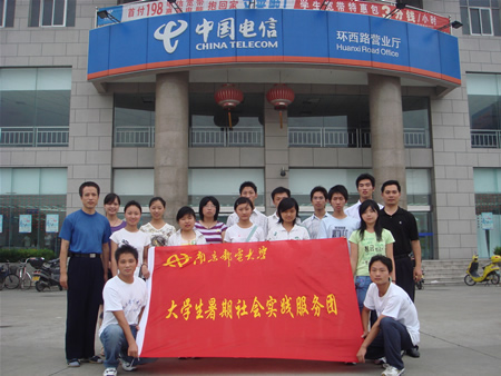 为帮助学生在生产实践中长才干,强素质,促进学生的全面发展,应用技术学院分团委积极响应学校关于开展暑期大学生社会实践活动的号召,结合学生的专业,组织了近20人的社会实践小分队奔赴如皋电信局开展了十几天的社会实践活动。此次实践活动的主要任务是:了解通信事业发展态势,了解到电信公司所承担的通信业务,了解到通信设备的维护知识,参与一些通信业务营销。实践活动采用听取专业讲座和业务锻炼相结合的形式,如皋电信局做了大量的准备工作,仅专家讲座就开展了十几个,内容包括中国电信集团公司的电话业务、互联网接入及应用、数据通信、视讯服务、国际及港澳台通信等。多种类业务学习和锻炼使同学们了解了电信发展的过程,感受到一线职工工作的艰辛以及不畏艰险、勇往直前的企业精神,同时也明确了自己努力的方向,在生产实践的过程中自身的综合素质得到了进一步的提高。
