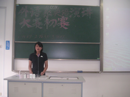 首先,李炯英教授发表了简短讲话并且宣布比赛开始。比赛过程中,选手们自信而又精彩的演讲引来台下阵阵掌声。尤其值得一提的是今年大一的新同学参加人数最多,充分显示了他们“初生牛犊不怕虎”的精神面貌。