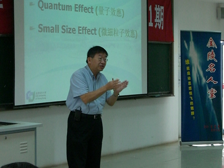 讲座中,李院士首先为我们介绍了纳米科学与技术的含义。他运用“搭积木”和“建房子”的生动比喻帮助大家理解纳米的集合。李院士向大家生动的描述了他带领的团队所研究的有机发光材料。把这些有机发光材料组成薄膜,做成软软的电视屏,即使掉在地上,小孩子撞上去,都不会有任何损伤。李院士告诉大家,发达国家非常重视纳米技术的研发,美国在克林顿执政期间就对纳米技术极为重视,并投入巨资进行研究。现在世界掀起了“纳米热”,是因为纳米材料技术将对人们的生活产生巨大影响。李院士认为:“纳米不是革命,它的发展是衍进性的”。