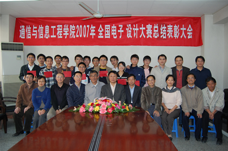 2007年10月22日下午,通信与信息工程学院在教学主楼613会议室隆重召开“2007年全国电子设计大赛总结表彰大会”。朱洪波院长、李晓飞副院长、彭洋副书记、教练组全体成员、大赛获奖队员、部分学生代表以及分团委范结兵老师、学工办王晶老师参加了会议。会议由李晓飞副院长主持。