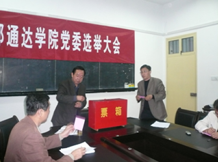 10月30日下午,通达学院党委召开全院党员大会,选举新一届党委委员。大会通过无记名方式投票选举产生了由王夫善、曹雪虹、王立辉、孙知信、甘宗盛五位同志组成的新一届党委。
