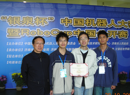 由计算机学院学生罗国平、王峻青,及自动化学院学生丁克组成的“南邮Apollo-3D”队,在10月26日至28日于济南举行的“2007中国机器人大赛”上喜获“RoboCup足球机器人仿真3D组”一等奖。