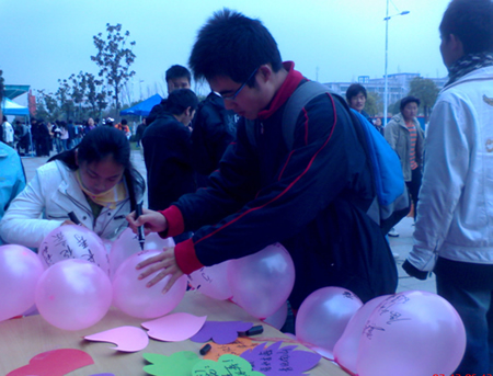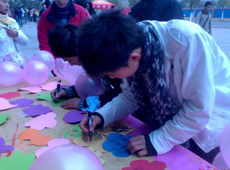 为了给敬老院的老人们送上我们最好的祝福,2007年12月6日院学生会在南二广场举行了“字语传情送温暖“的活动——通过收集过往同学们对于敬老院老人们的祝福,将其带来的浓浓暖意传递到老人们的心里;同时在光电工程学院07级的同学中大家也自发组织了书信比赛,大家把对老人们的情谊都写在了信中,由学生代表在9日的活动中念新闻稿给老人们听。