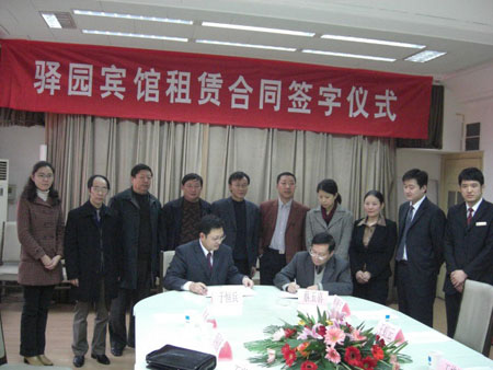 2007年12月15日上午,驿园宾馆租赁合同签字仪式在北楼会议室顺利举行。