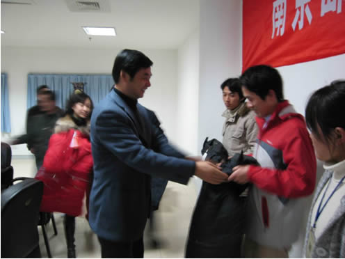 学生处张志华处长首先对此次寒衣发放情况作了简要的介绍,他说,“送寒衣,送温暖”是我校每年冬天为贫困新生开展的一项传统活动,旨在切实解决贫困生的实际困难,以保证他们安心学习、顺利完成学业。此次学校共为2007级贫困新生发放寒衣366件。