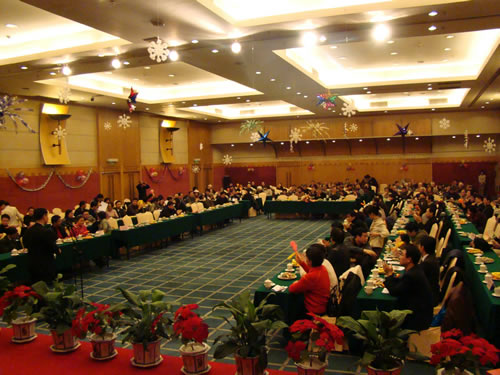 12月26日下午,通信与信息工程学院在双门楼宾馆紫金厅隆重举行2008新年联欢会。刘陈副校长以及学校的老领导谢玲书记、郑宝玉副校长,学院近90位离退休老同志、全体在职教职员工、因工作需要2007年调离学院的教师共300人度过了欢乐祥和的美好时光。