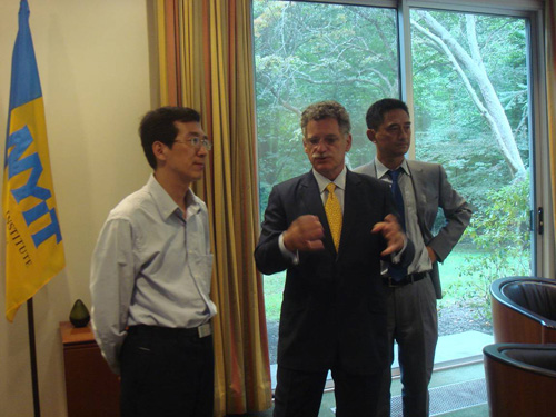 我校代表团此次应邀出访,受到了纽约理工学院的高度重视。在校方的陪同下,我校代表团参观了该校曼哈顿校区和长岛校区相关院系、实验室以及图书馆等教学设施。校长爱德华•朱利安诺教授等会见了代表团,并就双方的广泛合作进行了多次友好会谈。杨震校长和爱德华•朱利安诺校长分别介绍了两校的概况和发展目标,双方对已取得的合作成果表示满意,并就在已有基础上继续拓展、深化合作,扩大美国赴我校的留学生规模、选派教师干部培训、联合举办国际会议等问题达成广泛共识。在纽约理工学院期间,杨震校长一行还与美方Pizer等多名副校长、部分学院院长和部分华裔教授,进行了各种交流。