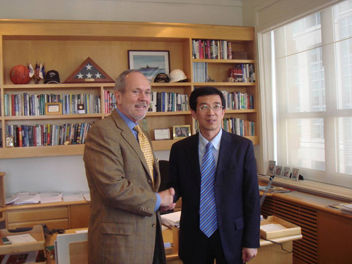 杨震校长在纽约大学访问,与Hultin校长交谈