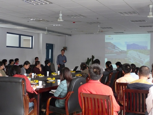 金秋十月,丹桂飘香,适逢祖国华诞六十周年。在这喜庆的日子里,信息材料与纳米技术研究院(以下简称“材料研究院”)迎来了建院后的第三批硕士和博士研究生。应我校副校长黄维教授的邀请,美国犹他州大学材料科学与工程学院臧泠教授到我院进行学术交流并与新生座谈。此次活动由我院与研究生部、海外合作与交流处联合举办。会议由材料研究院副院长凌启淡教授主持,材料科学与工程学院院长韦玮教授、副院长范曲立教授以及海外处、材料研究院的部分教师出席了学术交流与座谈会。