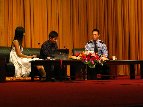 南师公共管理专业的刘立为同学2008年放弃学校保研的机会,报名参加了支援重建灾区的志愿者服务,在早晚温差极大、时常发生余震的四川省绵竹市,他克服重重困难,出色的完成了志愿者活动;南邮软件学院大四学生金路,讲述了自己在全国大学生信息安全竞赛的点点滴滴,在一次次的参赛过程中,他攻克重重难关,得到了锻炼和成长;南中医的优秀学生鹿竞文,讲述了自己组织志愿者服务队参加甘肃会宁县义诊的经历,勉励新同学学好知识,为西部建设贡献出自己的力量;来自南京森林公安的陈臻昱讲述了自己成为一名特警的成长经历,他还介绍了在面临歹徒时的自卫方法和丰富多彩的特警生活;南邮优秀学生代表石磊同学,介绍了自己在校学生会的工作经验,同时向同学们强调了自信的重要性,并分享了自己平衡学习与社团工作的经验,最后,她为在场的同学们献上了一曲悠扬的古筝独奏。