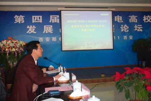 2009年11月11日至13日,“第四届全国邮电高校发展战略高层论坛”在西安邮电学院长安校区学术交流中心隆重召开。出席高层论坛的有全国各邮电高校的校领导及党办、校办主任,我校杨震校长及党办主任周南平、校办兼发展办主任颜福康出席。参加高层论坛开幕式的还有陕西省通信管理局、陕西省邮政管理局、陕西省教育厅的相关领导以及陕西省相关通信企业、西安邮电学院相关单位、部门的领导。论坛由西安邮电学院承办。