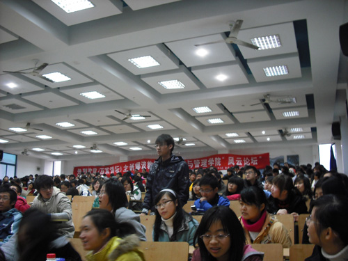 在经济与管理学院党委副书记彭刘生的介绍之后,郦波教授风度翩翩地走上讲台。一开场大家就都被他的风度与才华所吸引,字字珠玑、抑扬顿挫、加上学者的气质令在场的观众如沐春风。郦波教授在讲述中,通过对张居正与王安石的对比,包括两人变法的不同点,两个人做人方面的异同以及对变法之后的影响,体现了张居正作为一代名相的成功之处。一个多小时的讲座在不知不觉中结束,接下来的互动环节中,同学们纷纷踊跃举手,提出自己的疑问和见解,郦波教授一一做了精彩回答。