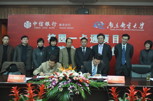 根据双方合约规定,由中信银行南京分行负责出资,为我校建设校园“一卡通”系统,为全校师生配备校园“一卡通”和捆绑中信借记卡。全校师生可在校外进行存取现金、转账、消费等,在校内实现缴纳学费、进餐、就医、上网、乘车等功能,亦可实现各类身份认证管理,包括图书借阅、电子注册、教学管理、门禁管理等。银行方面承诺,将充分协助南邮将校园卡打造成代表全国高校一流水平的,集校园商务、校园管理和金融服务为一体的真正意义上的“一卡通”。