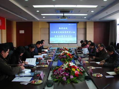近日,以江苏工学院陈奎庆副院长为组长的江苏省高校“文明食堂”检查组一行六人对我校“文明食堂”创建工作进行验收。叶美兰副校长在仙林行政楼第一会议室代表学校向专家组成员汇报了我校“文明食堂”创建工作,校办、财务处、学生处、团委、后勤管理处、后勤服务集团等相关部门负责人出席了汇报会。
