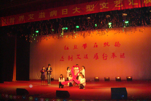 晚会的最后,由各兄弟学校代表上台共同宣誓,突出了今年的主题是“遏制艾滋,履行承诺”,强调“权益、责任、落实”,更坚定了我们坚决抵抗艾滋,而又关爱艾滋病人的决心。最终,晚会在充满爱意的宣誓声中落下帷幕。这次演出也是“艾滋病宣传周”的启动标志。