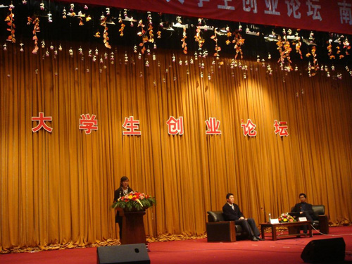 12月4日,在仙林大学生活动中心青春剧场,第三期大学生创业论坛——“我能创未来”成功举办。本次活动是由南京市劳动和社会保障局、南京团市委、校团委联合主办,南京市青年人才创业服务中心和校学生会承办。活动特邀嘉宾是江苏省电子商务协会发起人、中国互联网大会专家顾问、南京珠江路IT十佳青年、南京投石科技有限公司经理孙峰峰先生和南京青年人才创业服务中心的庄志安主任。