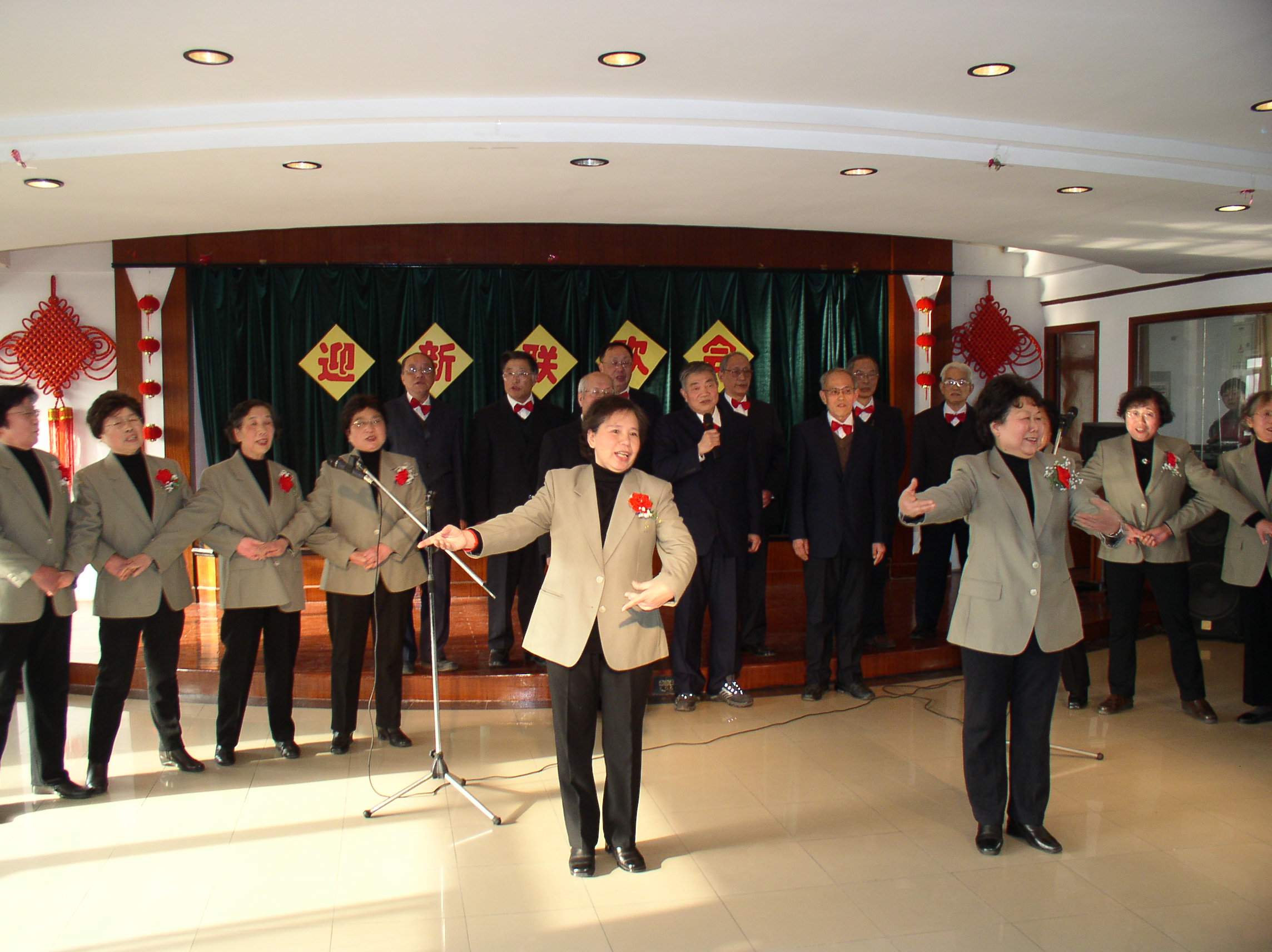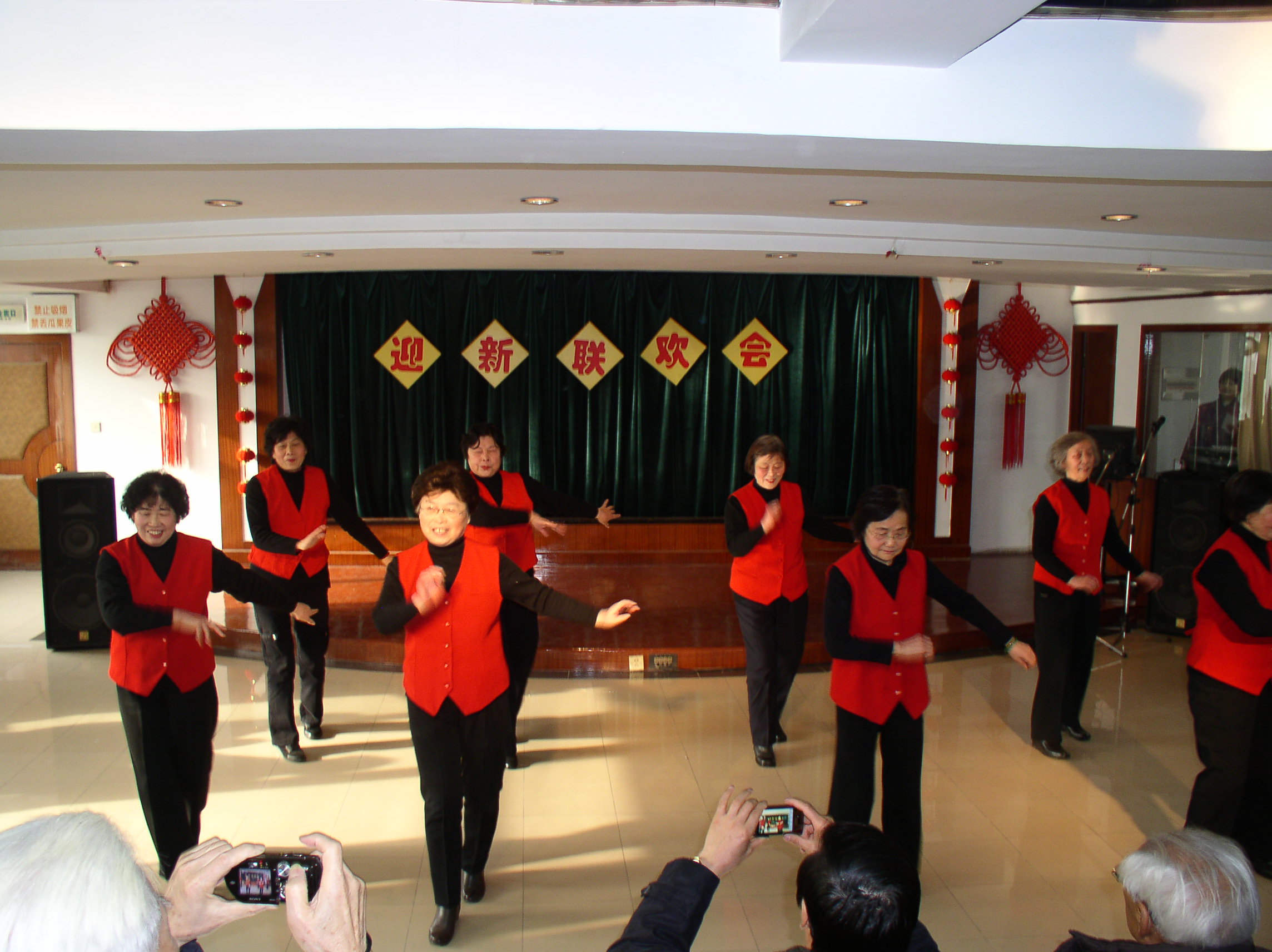 联欢会上,老同志载歌载舞,喜迎新年,他们兴致勃勃地表演了歌曲、舞蹈、戏曲,并即兴演唱卡拉OK。通信信息与工程学院的20位老同志的表演唱《我和你》,充满深情,感染了在场的每位观众,向全场观众传递了爱,传递了和谐。戏曲大联唱中,老同志们将京剧、越剧、锡剧、豫剧、黄梅戏、沪剧等地方戏演绎得有声有色,韵味十足。舞蹈表演动感十足,神采飞扬;合唱表演精神饱满,歌声嘹亮,联欢会现场不时激起一阵阵热烈的掌声。老同志的表演热情表达了他们对祖国、对学校的热爱,也体现了他们晚年生活的幸福,