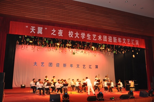 12月30晚,在这辞旧迎新的时刻,“天翼之夜”南京邮电大学大学生艺术团迎新年文艺汇演在仙林校区青春剧场隆重举行。校团委书记张翼老师,副书记张敏老师,学生处副处长何海洋老师以及各学院分团委书记和师生代表出席了本次晚会。整场晚会节目内容丰富多彩,掌声不断,高潮迭起。电声乐团的激情演出《唤醒沉睡的你》、《Holiday》为本场晚会拉开了序幕。民乐团三首连奏《喜洋洋》、《拔根芦柴花》、《茉莉花》尽显古韵民风,给我们描绘了一派喜气洋洋、举国同乐的景象。曲艺团的相声《满汉全席》赢得了观众的阵阵掌声,演员精湛的表演将晚会推向了高潮。舞蹈团的《桃夭》美轮美奂,给我们带来一场视觉的盛宴。其后,更有古筝小合奏《蝴蝶泉边》、京剧《洪洋洞》、流行歌曲串烧等精彩纷呈的节目一一登场。管弦乐合奏《匈牙利舞曲》、《卡门》、《别再忧虑》带动了整场晚会的气氛,其轻快熟悉的韵律节奏,又一次将晚会推向了高潮。诗朗诵《相约2010》满含深情地抒发了对新年的企盼,诗情画意的语句和饱含深情地朗诵给师生们带来了一场听觉的盛宴,在2010年即将到来之际为校园带来了一份节日的贺礼。