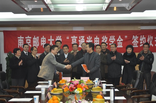 1月20日,南邮在三牌楼校区科学会堂第三会议室隆重举行“亨通光电奖学金”签约仪式。