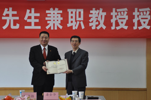 签约仪式结束后,我校还举行了王建沂先生兼职教授授聘及校董会终身理事授聘仪式。杨震校长为王建沂董事长颁发了南京邮电大学兼职教授聘书;黄维副校长为王建沂董事长颁发了南京邮电大学校董会终身理事聘书。