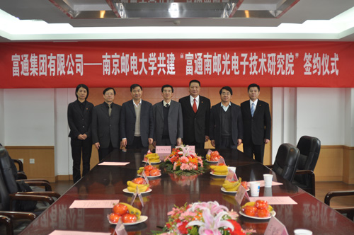 4月12日上午,我校与富通集团有限公司共建“富通南邮光电子技术研究院”签约仪式在三牌楼校区科学会堂第三会议室举行。富通集团有限公司董事长、全国政协委员王建沂,总裁肖玮,江苏省通信管理局局长苏少林,我校校长杨震、副校长黄维出席了签约仪式。