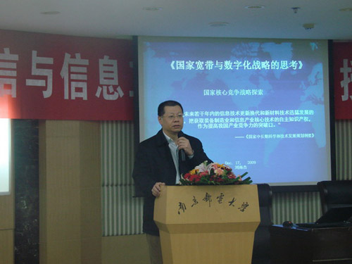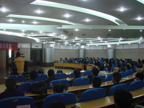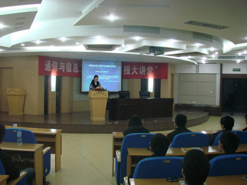 刘教授从国家中长期科学和技术发展规划纲要、未来网络、物联网和网络泛在、国家宽带(NGBN)项目和国家信息化战略等五个议题展开,全面的介绍了国家宽带和数字化战略方面的知识。从物联网和网络泛在到未来网络的发展概况,刘教授用深入浅出的语言和丰富生动的实例将在场的同学们领进了神奇的数字网络世界。他列举了Facebook、Google、亚玛逊、苹果、MSN、QQ等的运营效率以及商业模式,得出“这些运营效率和逐渐成绩的商业模式就是下一代运营上的雏形,而且下一代运营商的数量也将服从长尾规律来分布”的结论。接着,刘教授就国家宽带与数字化战略的意义和广泛前景进行详细讲解,并对新一轮宽带战略对全球宽带市场将有较大的促进作用的五个方面进行深入的思考和解读。