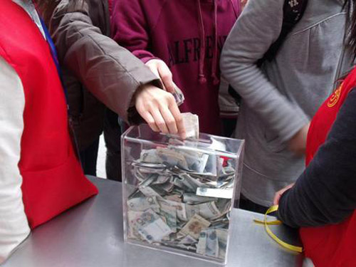 募捐活动由经济与管理学院分团委书记肖国丰主持。南京慈善总会副秘书长许林龙和经济与管理学院党委副书记彭刘生分别致辞,他们号召在场的所有同学积极发扬“一方有难、八方支援”的精神,用自己的微薄之力为灾区人民点燃前行的希望。随后,同学们有序地排队进行捐款,捐款箱旁还放置了“祈福墙”,同学们在上面写下想对玉树人民所说的话,祈求玉树人民早日重建美好家园。现场还设有“地震逃生知识”学习角,用图文并茂的形式向同学们讲述了地震逃生的常识。