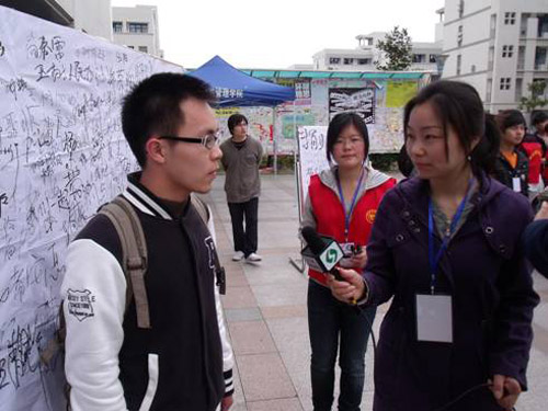 经济与管理学院组织学生捐款得到江苏教育电视台报道