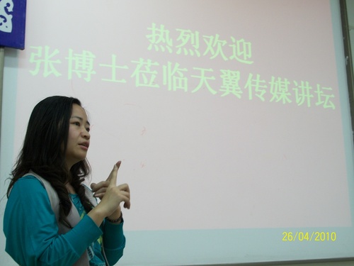 4月26日晚,美国韦恩州立大学教育技术学专业副教授(终身教职)张珂博士应邀做客传媒与艺术学院“天翼•传媒讲坛”,在仙林校区教3-305和教育技术学专业老师、研究生、本科生100多人进行交流。讲坛由传媒与艺术学院副院长余武教授主持,出席嘉宾还有南京大学网络化学习与管理研究所副所长梁林梅博士。