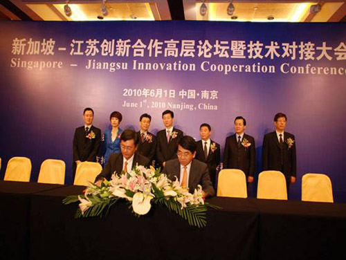 6月1日上午10时,由江苏省科技厅联合新加坡国际企业发展局所举办的“新加坡—江苏创新合作高层论坛暨技术对接大会”在南京金陵饭店召开。本次大会是“新加坡-江苏合作理事会”确定的2010年科技领域的一项重要活动,也是近几年双方共同举办的规模最大、层次最高、参会人员最多的一次科技交流活动。